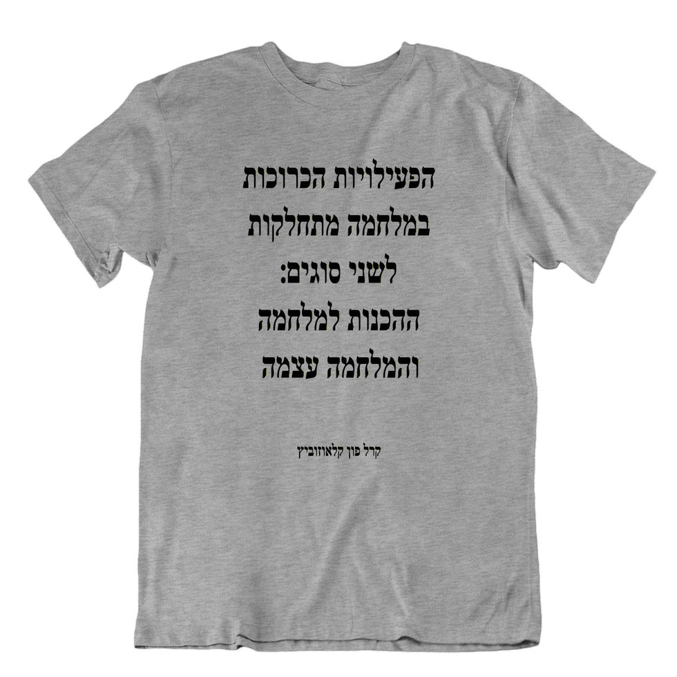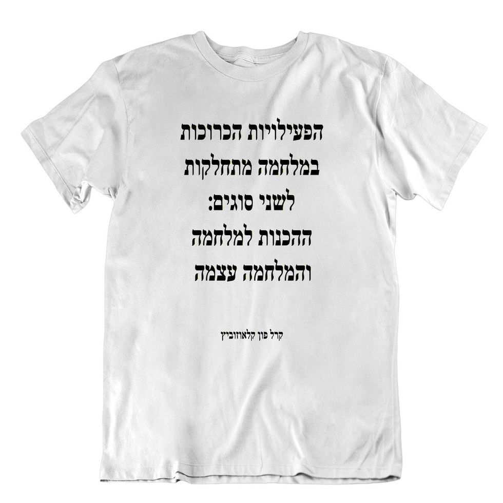 חולצה עם אמירה נחרצת הפעילויות הכרוכות במלחמה מתחלקות לשני סוגים עיקריים: ההכנות למלחמה והמלחמה עצמה. קרל פון קלאוזוביץ