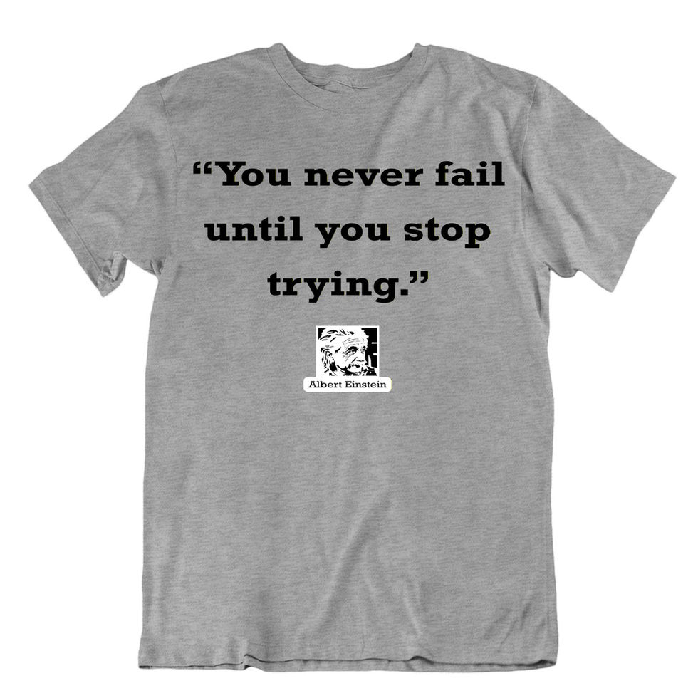 חולצה עם ציטוט של אלברט איינשטיין - אתה לא נכשל עד שאתה ממשיך לנסות